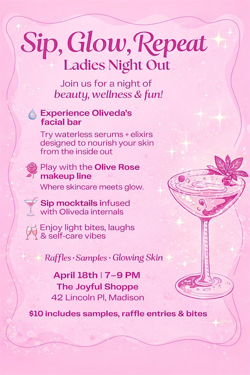 đź’– Sip, Glow, Repeat: Ladies Night Out is your chance to unwind, indulge, and glow from the inside out.