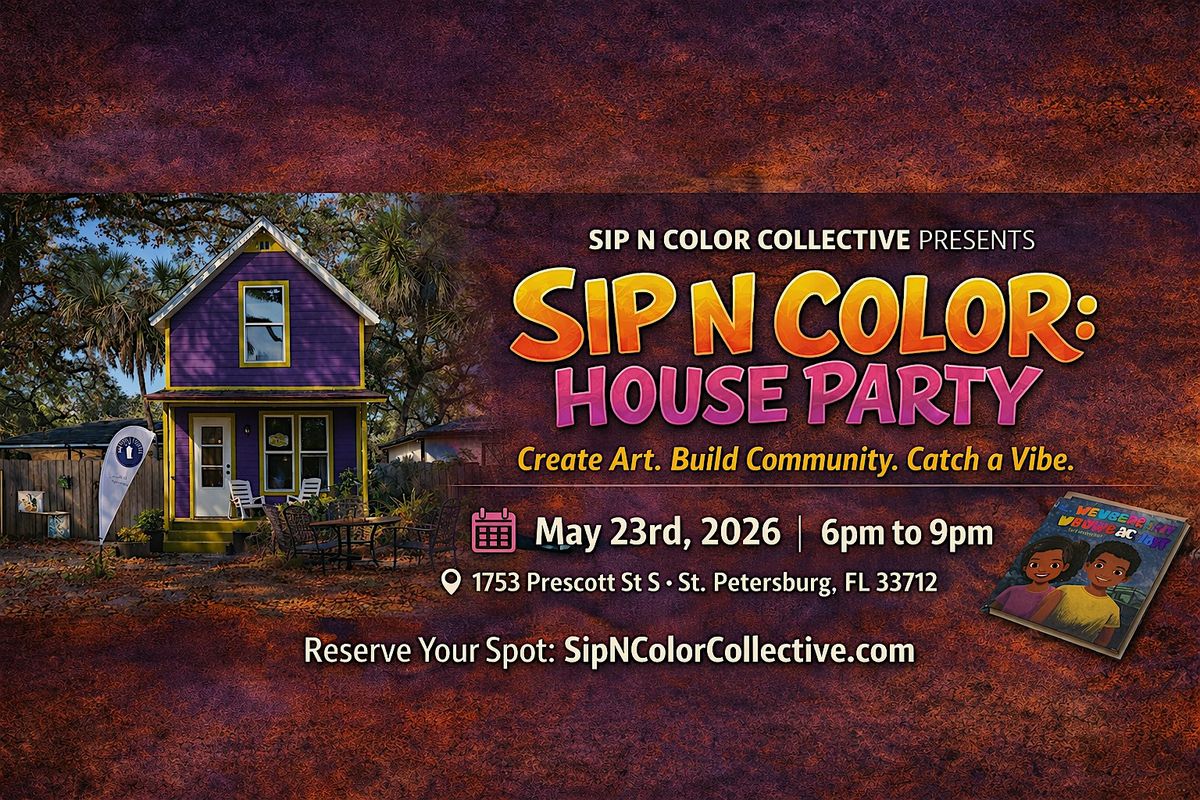 Join us for a cozy, creative afternoon at Sip N Color: House Party, a monthly art and community experience hosted by the Sip N Color Collective in the heart of South St. Petersburg.