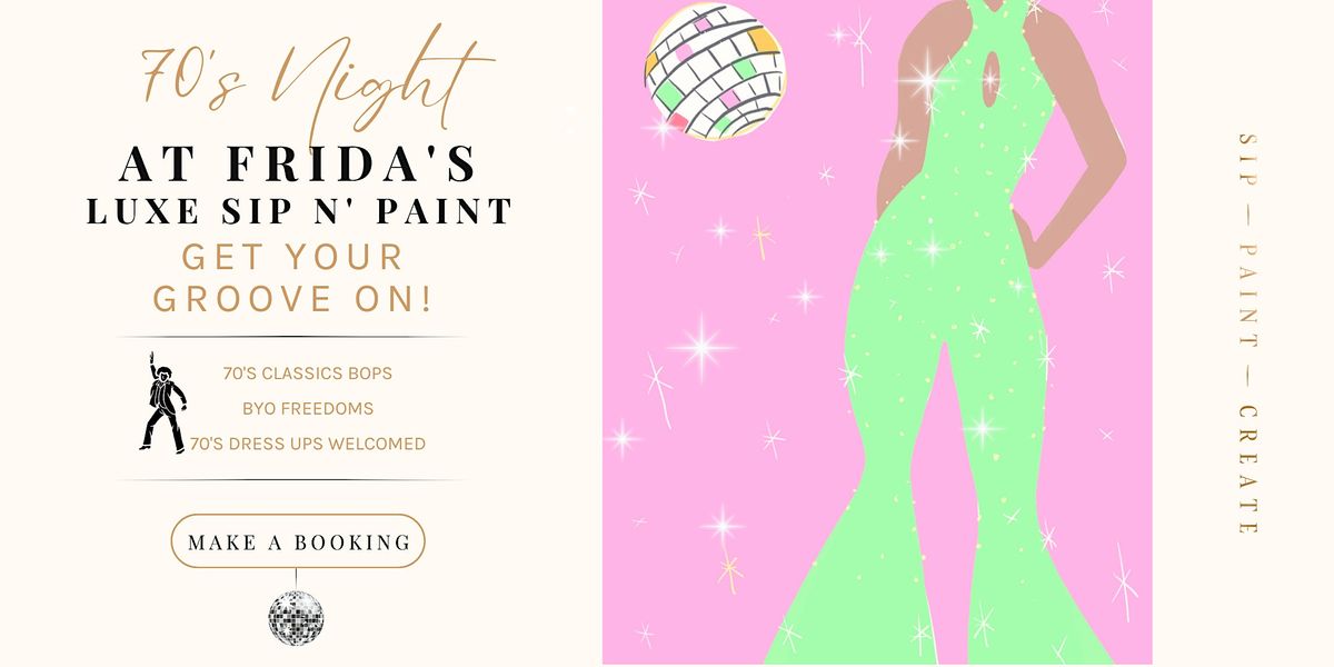 Get ready to shimmy and paint the night away at Frida's Luxe Sip n' Paint for 70's Night