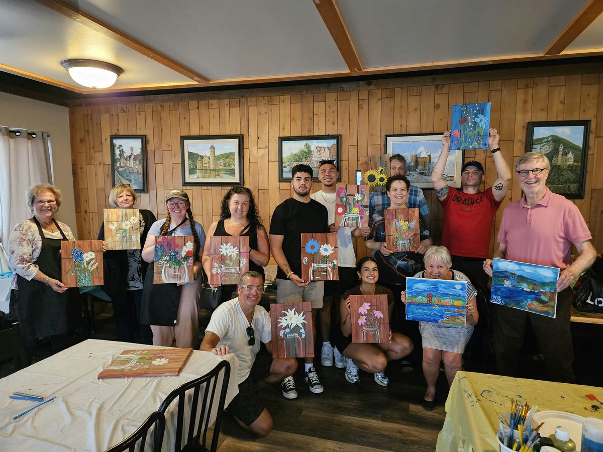 Arrive early (around 430pm-ish) to enjoy a wonderful meal & drinks at Barb & Ernie's before starting painting.