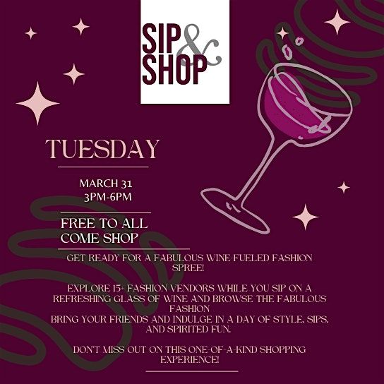 Kick back with some drinks and find your new fave styles at this chill Sip N Shop hangout!About this Event