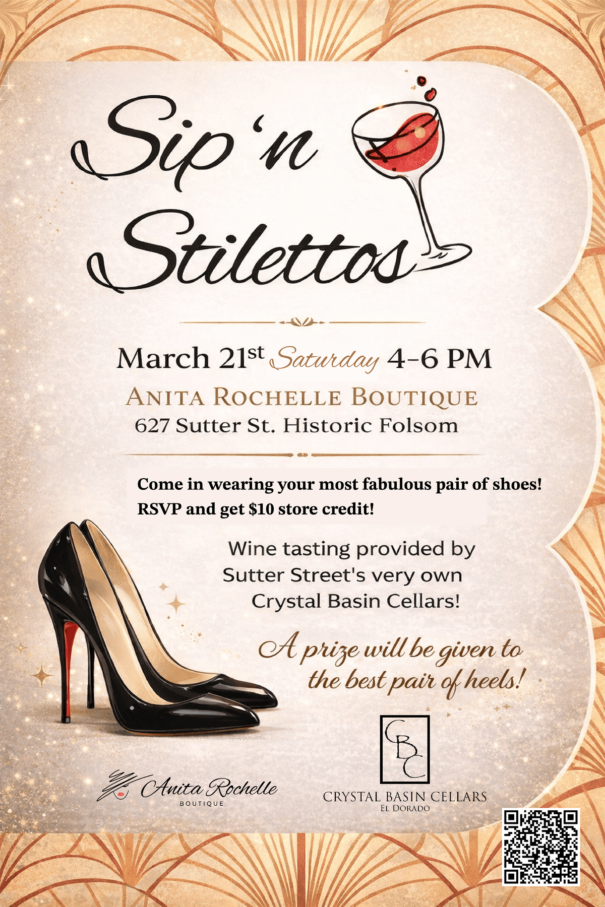 Join us and Crystal Basin Station for an afternoon of wine and shopping! Come in wearing those fabulous pair of shoes you never get to wear anywhere else! A prize will be given to the best pair of shoes!