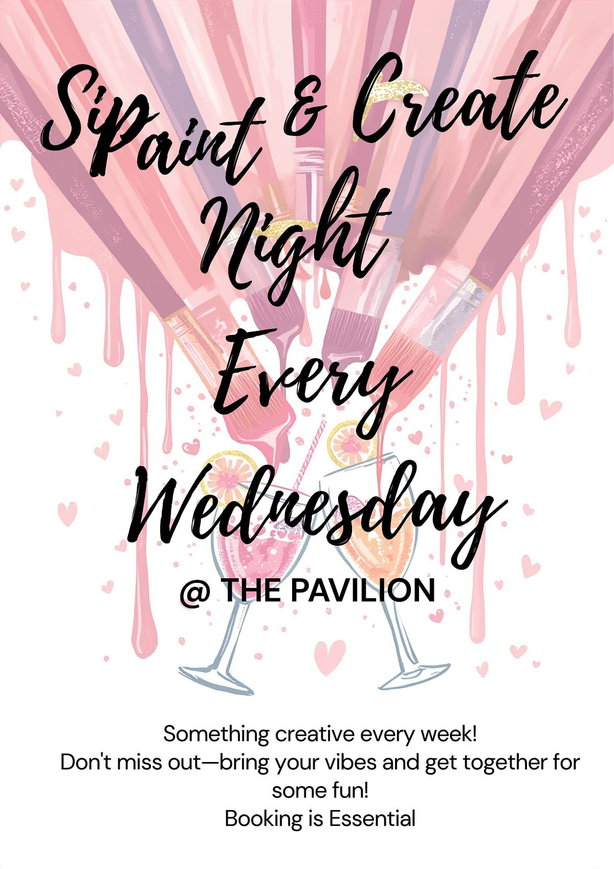 Ready to unwind midweek? Join us every Wednesday for a fun, in-person Sip, Paint, and Create Night! Bring your friends, sip on your favourite drinks, some great food and let your creativity flow.
