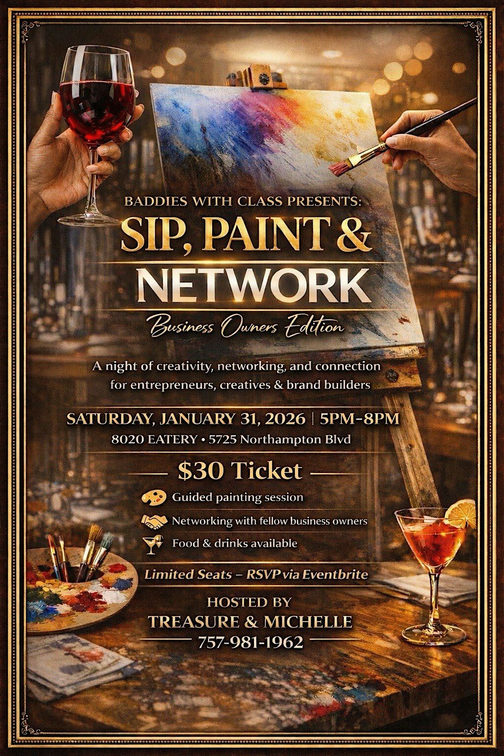 Spots are limited. Secure your seat and come sip, paint, and network with intention.