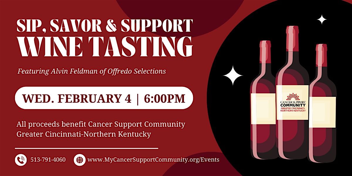 Let’s raise a glass to community, compassion, and connection - all proceeds benefit Cancer Support Community Greater Cincinnati-Northern Kentucky, providing free emotional and social support for people impacted by cancer.