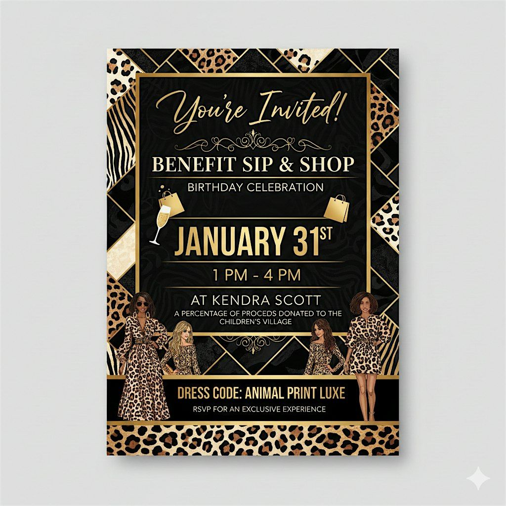 You’re invited to a Benefit Sip & Shop Birthday Celebration with an Animal Print Luxe theme! 🐆🥂✨