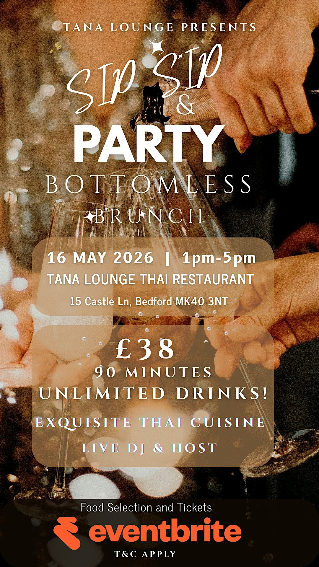 Welcome to the SIP SIP & PARTY - BOTTOMLESS BRUNCH - at Tana Lounge Thai Restaurant on May 16, 2026, at 1:00 PM!