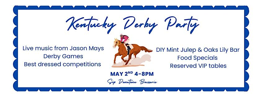 Join us for a festive Kentucky Derby Party on Saturday, May 2nd from 4–8 PM! Enjoy an afternoon of live music from Jason Mays, exciting competitions for Most Elegant, Most Creative, Most Over-the-Top, and Best Couple, plus fun games throughout the event. Sip in style at our DIY Mint Julep & Oaks Lily bar and indulge in delicious food specials—all while supporting a great cause, with proceeds benefiting the Golden Girl Group Home. Admission to the event is free, so everyone is welcome to join the fun! For those looking to upgrade their experience, VIP tables are available for advance purchase—reserve a table of 8 for $250 or a table of 4 for $125, both including premium seating, a dedicated server, a charcuterie board, and sparkling wine. Please note that drinks from the DIY bar and food specials will be available for purchase during the event. Don your finest Derby attire and celebrate with us!