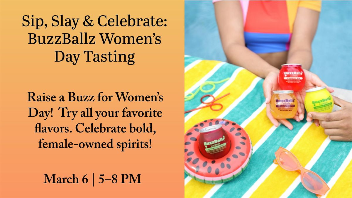 Taste a variety of BuzzBallz flavors, explore your favorites, and enjoy a lively, social atmosphere. Whether you’re celebrating with friends or treating yourself, this tasting is all about flavor, fun, and empowerment.