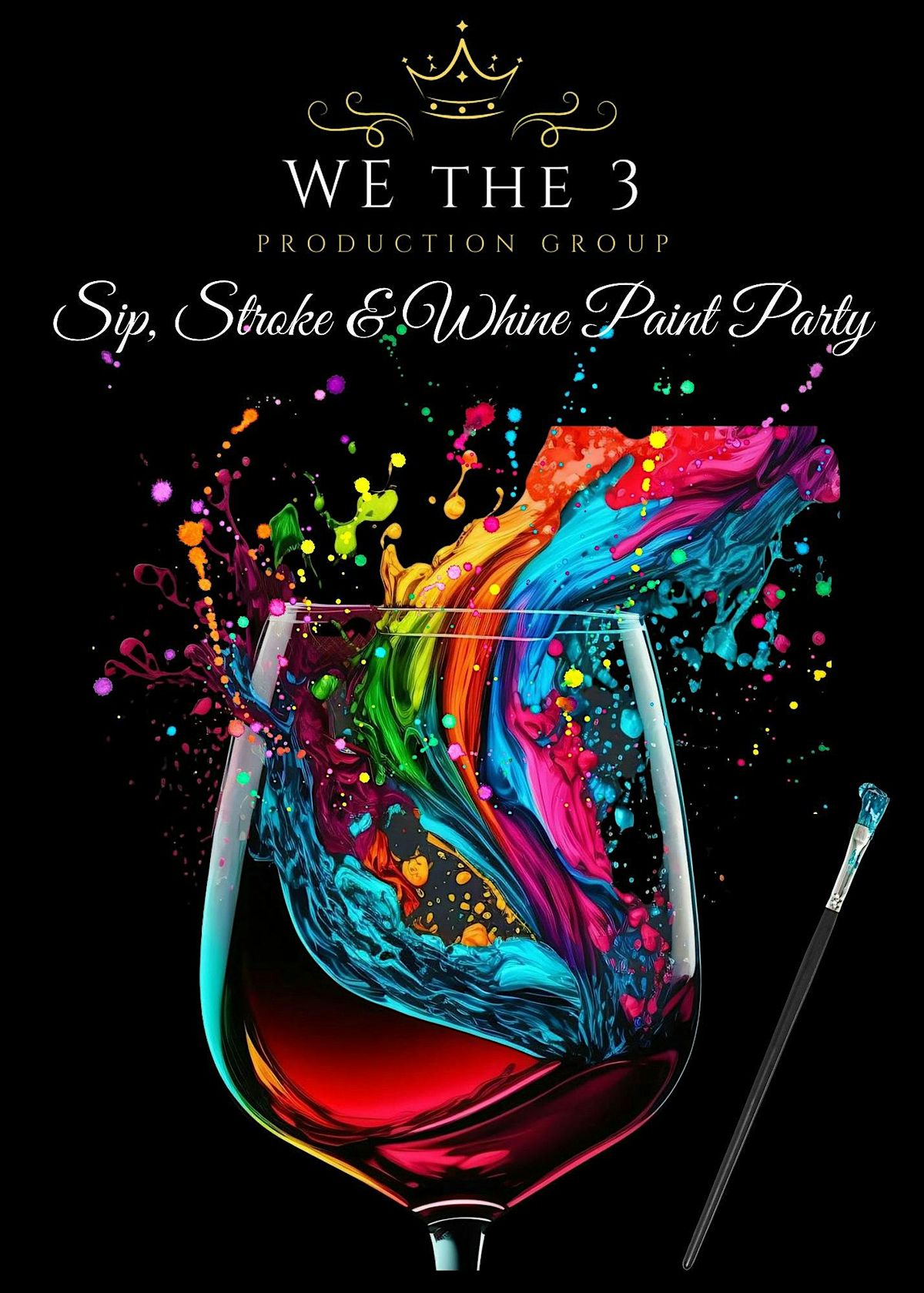 While you- the “attendee”, guest”, “vendor, vendor’s staff or volunteers”, etc., are attending this function - Sip, Stroke & Whine Paint Party, along with We The 3 Production Group staff and its business affiliates you - the “attendee”, guest”, “vendor, vendor’s staff or volunteers”, and the like thereof, will not hold our team & business affiliates responsible for the health and safety of this event. Nor will you hold us - We The 3 Production Group staff and our business affiliates, responsible for those attending this function who may or may not be sick - ill. Nor hold countable for self-inflicted injuries. This includes - tripping & falling, chipping a nail, cutting of self on an object, etc. Or injuries received by another – fighting, gun shots – shot or stabbed by someone. Nor by one who may be experiencing mental illness, PTSD or pain and suffering.