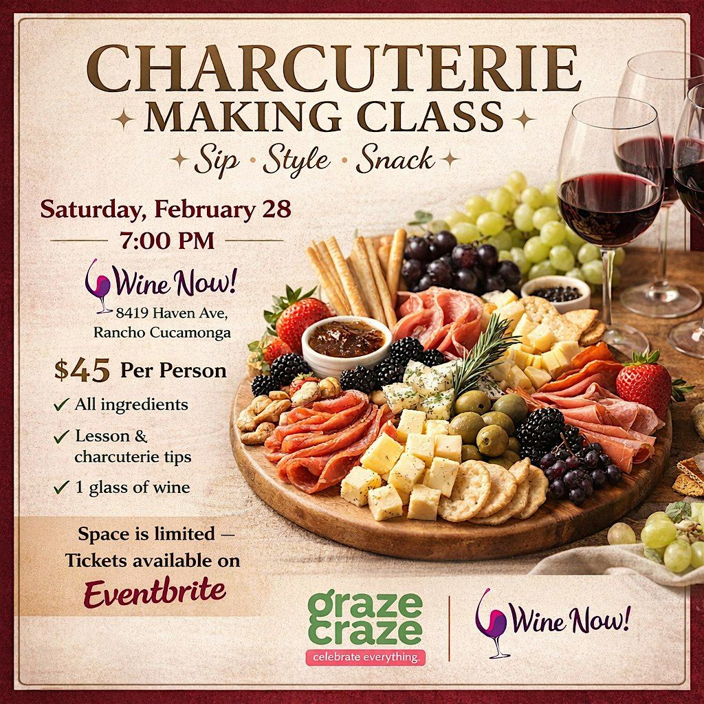 This class includes a take home charcuterie box and a 4oz class of wine. Add ons and additional beverages available for purchase.