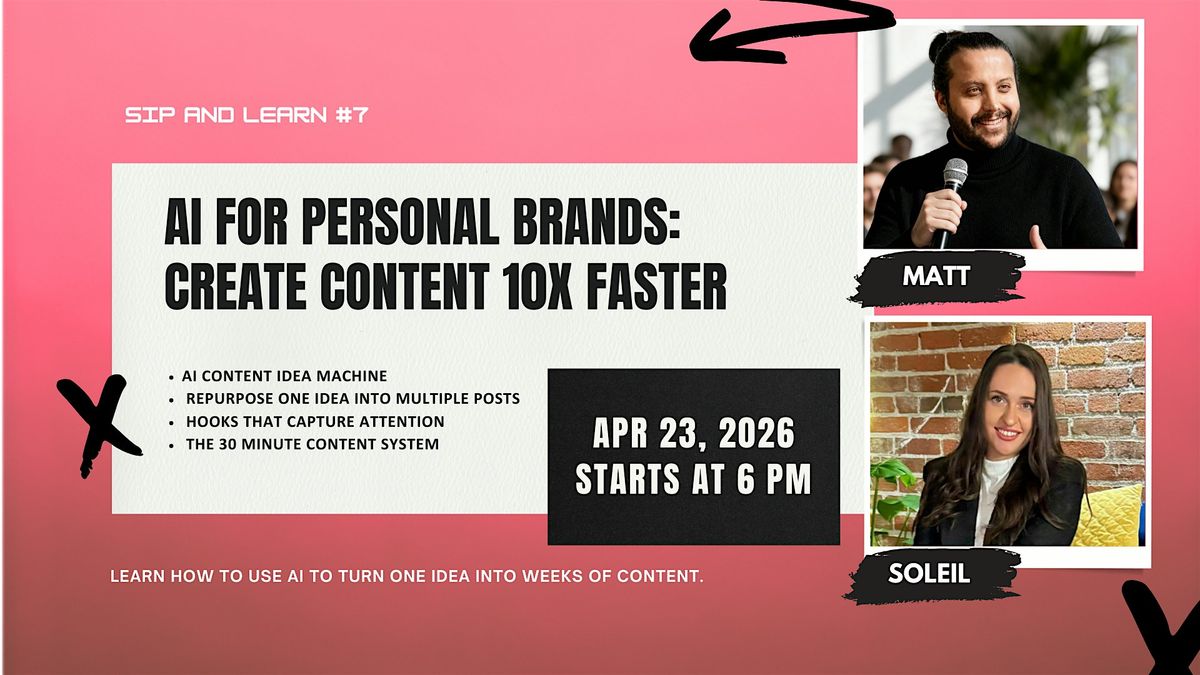 In this Sip & Learn session, we’ll explore how creators, entrepreneurs, and professionals can use AI tools to build their personal brand and create content faster, easier, and more consistently.