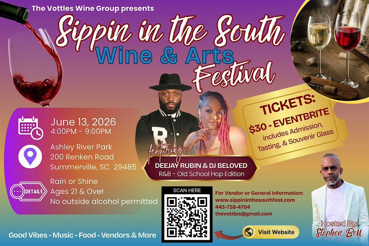 Get ready to sip, taste, and kick back Southern-Style! Come join us in person for a chill day filled with delicious wines , food , live entertainment and amazing art. Whether you're a wine lover or an art enthusiast, this festival is the perfect spot to sip, explore, and vibe with the Community . Bring your friends, soak up the atmosphere, and enjoy some of the best wines from all over the US has to offer. Don’t miss out on this fun, laid-back celebration!