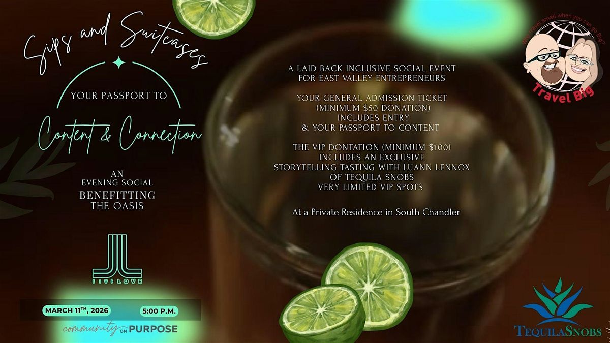 What happens when you mix world-class tequila, luxury travel inspiration, and a heart for our Chandler community? You get Sips & Suitcases. On March 11th, we’re transforming Sybil Imel’s stunning backyard into a global journey. Grab your event passport and "travel" to stations inspired by Tulum, Cabo, and Mexico City—all while networking with the most vibrant women entrepreneurs in the Valley.