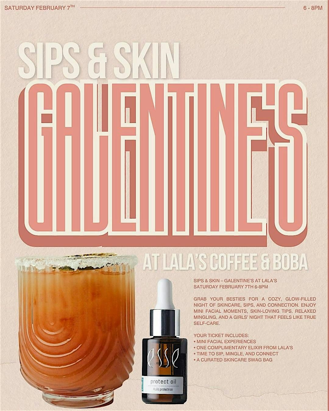 Sip, glow, and vibe with your besties at Lala’s for the ultimate Skin-Galentines celebration!