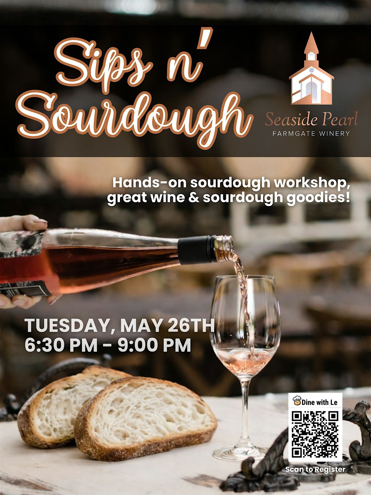 Ready to roll up your sleeves and dive into the delicious world of sourdough? Whether you're brand new or have flirted with sourdough before, this beginners' workshop will guide you through the ins and outs of baking tangy, crusty loaves from scratch—and yes, you’ll have a thoughtfully crafted Seaside Pearl wine in hand to sip on while we fold, snack on, and chat all things bread.