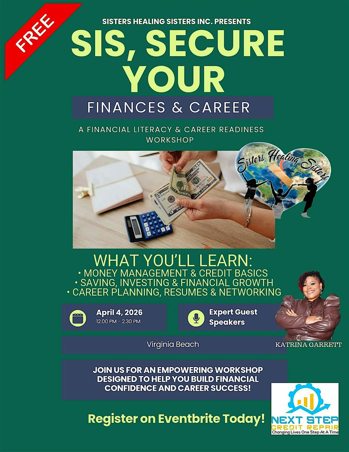 Join Sisters Healing Sisters Inc. for Sis, Secure Your Finances & Career, an empowering financial literacy and career readiness workshop designed to help women build financial confidence and prepare for career success.
