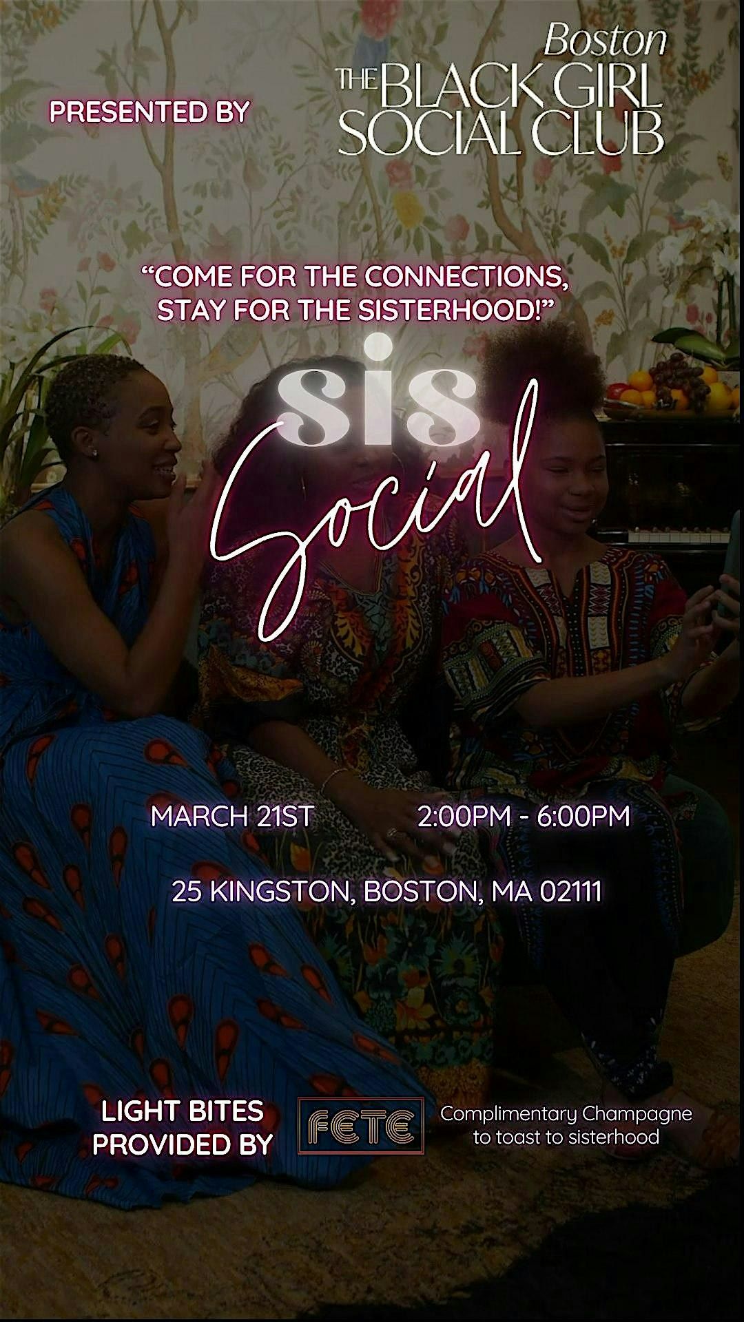 ✨ Your ticket includes light bites curated by and a complimentary glass of champagne as we raise a toast to Black sisterhood.
