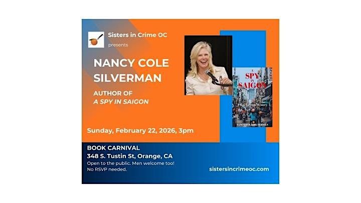 Join us for an exciting in-person event with Nancy Cole Silverman, a fantastic author known for her gripping mysteries and unforgettable characters. This is a great chance to meet Nancy, hear about her writing journey, and chat with fellow mystery lovers. Don’t miss out on a fun and inspiring evening with Sisters in Crime OC!