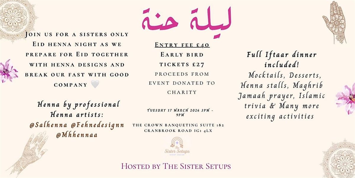 Get ready for a very first special Eid Henna Night event hosted by TheSisterSetups ♡