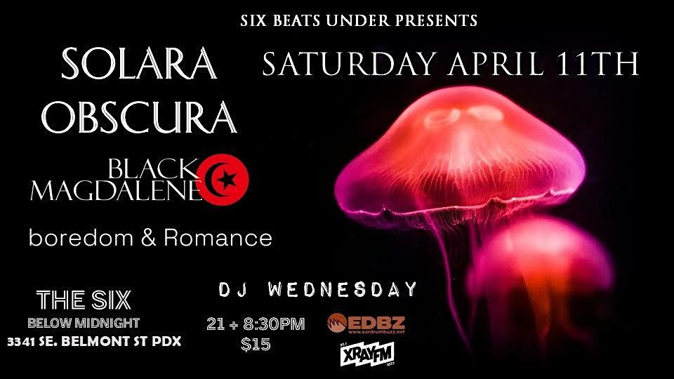 SIX BEATS UNDER PRESENTS: SOLARA OBSCURA, BLACK MAGDALENE (EUGENE), boredom & Romance