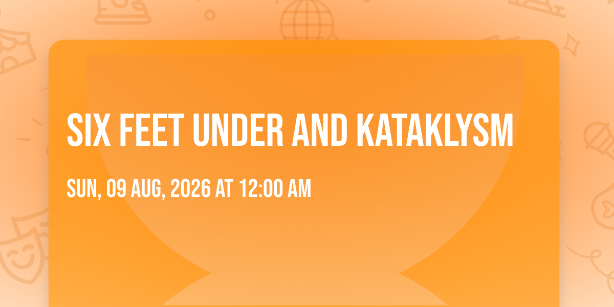 π Location: 44.9775, -93.275β¨ Embark on an extraordinary journey at Six Feet Under and Kataklysm, where every moment promises to be unforgettable! π Imagine of transforming Skyway Theatre in the heart of Minneapolis, MN into a realm of endless possibilities. π Join us on August 9th, 2026 at 12:00 AM for an experience that will challenge your imagination and exceed your expectations. π― This carefully curated event combines the finest elements of entertainment, innovation, and community spirit. Whether you're an adventure seeker, culture enthusiast, or someone looking for unique experiences, this event offers something special for everyone. π Don't miss this chance to be part of something extraordinary!