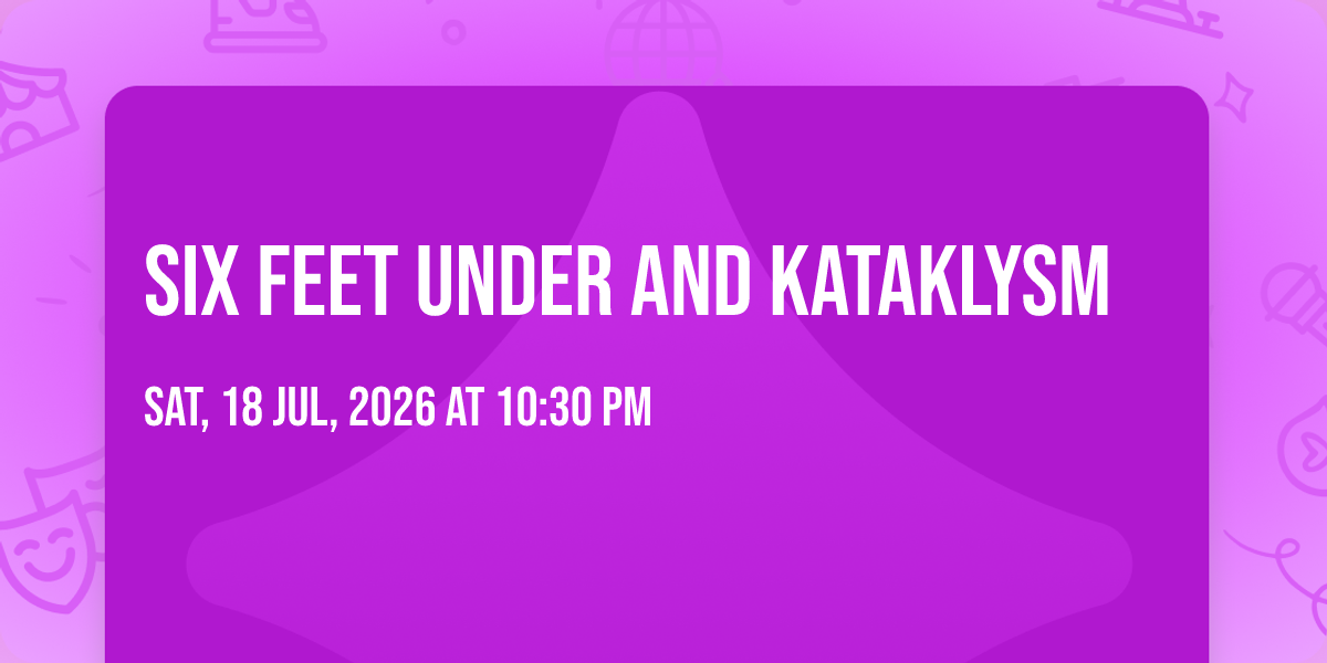 📍 Location: 26.1666, -80.1166✨ Experience the magic of Six Feet Under and Kataklysm, where moments become memories that last a lifetime! 🏛️ The iconic Culture Room in Fort Lauderdale, FL sets the perfect stage for an unforgettable celebration on July 18th, 2026 at 10:30 PM. 🌟 It's been a curated experience that brings together the best of entertainment and innovation, creating an atmosphere of wonder and excitement. From the moment you arrive, you'll be immersed in a world where the ordinary transforms into the extraordinary. 🎊 Book early to secure your place in what promises to be an event that will be talked about for years to come!