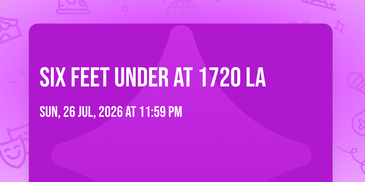 ✨ Experience the magic of Six Feet Under at 1720 LA, where moments become memories that last a lifetime! 🏛️ The iconic 1720 LA in Los Angeles, CA sets the perfect stage for an unforgettable celebration on July 26th, 2026 at 11:59 PM. 🌟 It's been a curated experience that brings together the best of entertainment and innovation, creating an atmosphere of wonder and excitement. From the moment you arrive, you'll be immersed in a world where the ordinary transforms into the extraordinary. 🎊 Book early to secure your place in what promises to be an event that will be talked about for years to come!