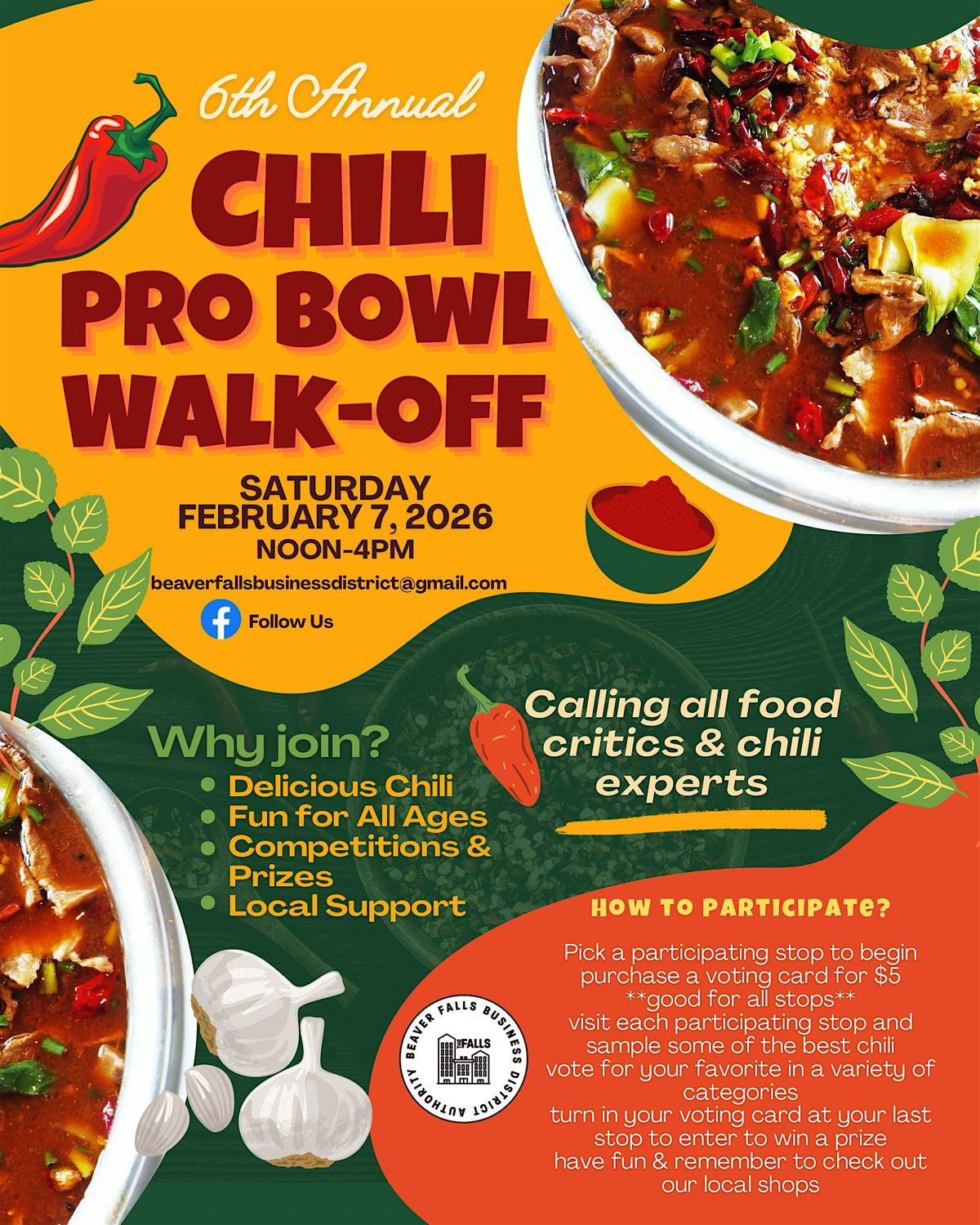Get ready to taste some serious heat and flavor at the Sixth Annual Pro Bowl Chili Walk-Off. This in-person event is the perfect chance to walk around, sample mouth-watering chili from top chefs, and enjoy great company. Whether you're a chili pro or just here for the fun, don't miss out on the spicy action and good vibes. Bring your appetite and come ready to vote for your fave chili!