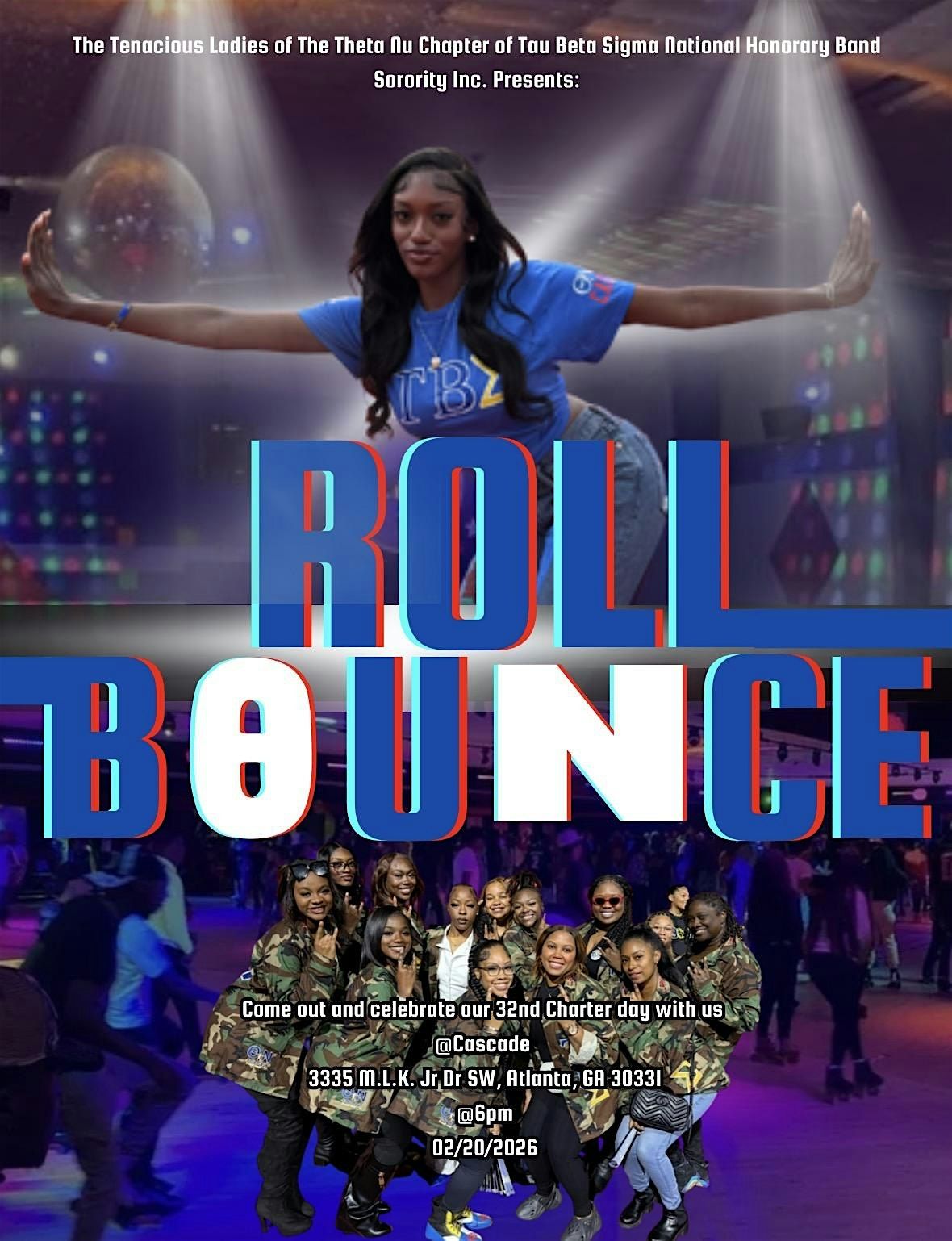 The Tenacious Ladies of the Theta Nu Chapter of Tau Beta Sigma invite you to lace up your skates and roll back to 1994! Join us for a night full of throwback vibes, nonstop skating, and pure fun as we celebrate Theta Nu Charter Day in style. Whether you’re showing off your smooth moves or just vibing to the music, this is a night you don’t want to miss. Grab your friends, secure your tickets, and come roll bounce with us at Cascade!