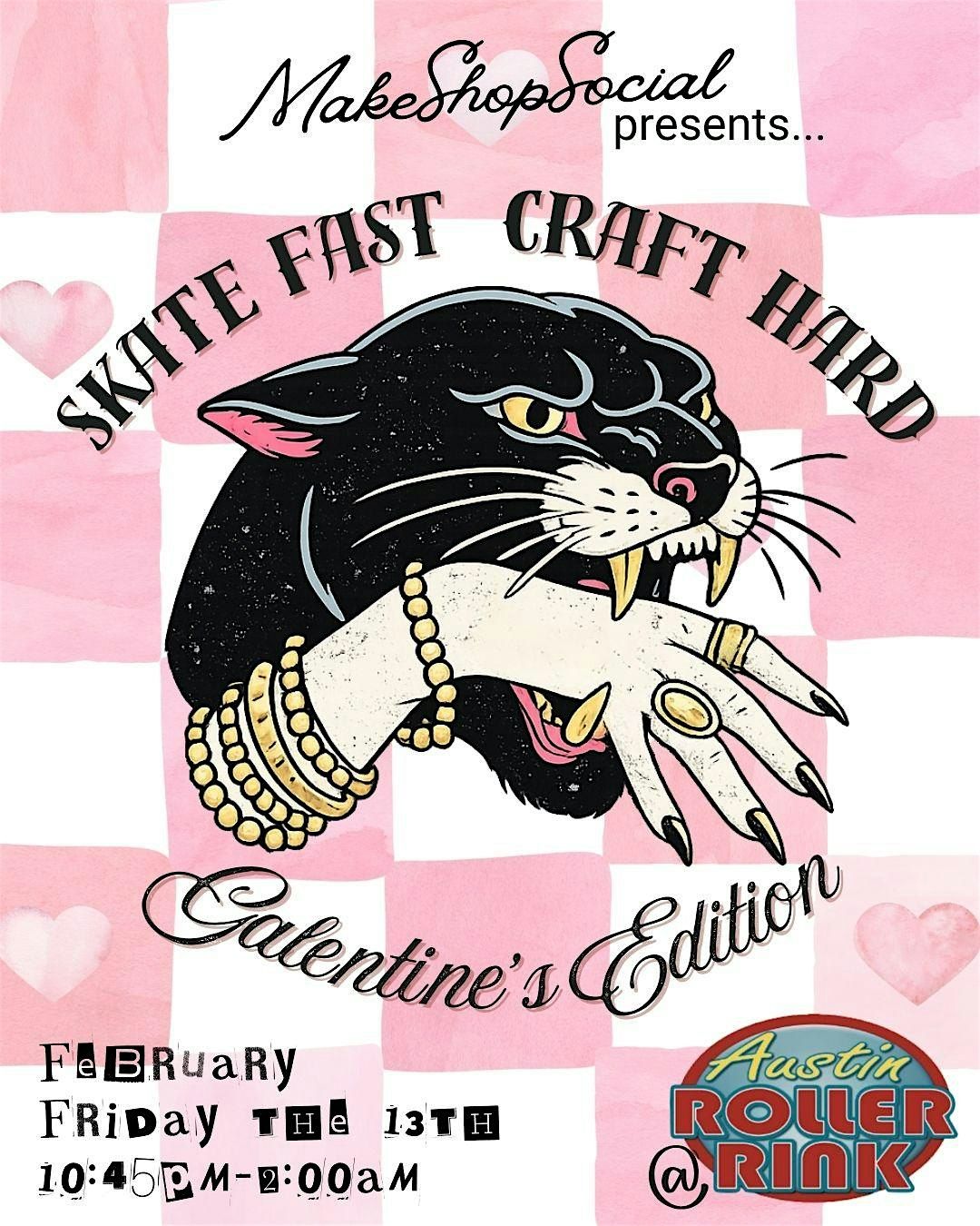 Skate Fast Craft Hard is an adults-only craft + skate night hosted by Make Shop Social — Buda-based creative events bringing playful, connection-driven experiences to the Austin area.
