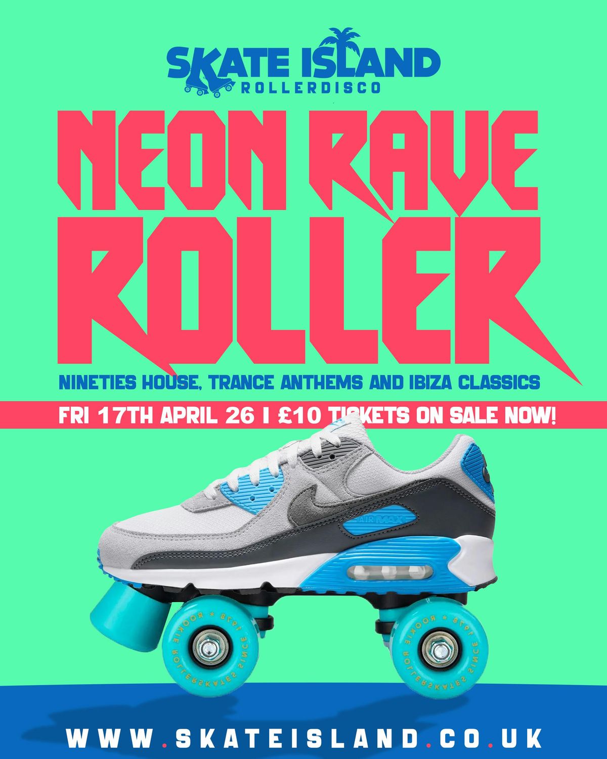 Friday 17th April๐ Newcastle Racecourse, High Gosforth Park Newcastle upon TyneGlow hard. Roll harder.Step into a UV soaked rave on wheels as Skate Island lights up with neon effects, glow sticks, UV paint, and pumping dance classics ๐ฅ๐กEnjoy 90 minutes of high energy skating with live DJs creating a full sensory rave atmosphere, the dance scene that just wont die, forever we will be children of the night.๐ Food and drink options available to keep you fuelled๐ถ Big dance anthems and high energy beats๐ผ A bright, bold, and unforgettable skating experience.๐ More info at www.skateisland.co.uk----------------------------------------------------------------------------------------------------------------------------------------------------------------------------------------------------------------------------------------------------------------------------------------------------------
