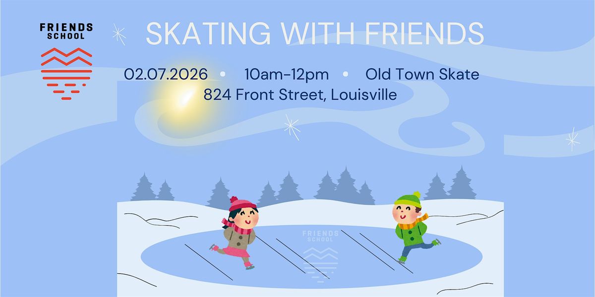 Join us for a fun morning skating with Friends at Old Town Skate in Louisville. This event, sponsored by Friends School, is for families with children in PS-8th grade. Children must be accompanied by a parent or caregiver. Free, including skate rental. Snack bar open for families who wish to purchase snacks.. RSVP by 2/5.