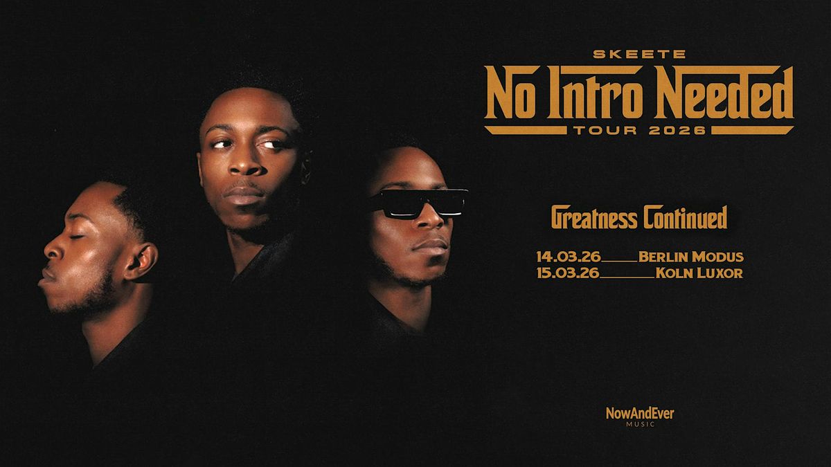 Nach seinen viralen Hits Toxic Trait, Weekdays und Tek Buddy bringt der brtitische R&B, Dancehall und Afrobeats-Sensation Skeete seine gefeierte „No Intro Needed Tour“ erstmals nach Deutschland! Mit seiner unverwechselbaren Mischung aus soulvollen Balladen, tanzbaren Afrobeats und ehrlichen Storytelling kommt er im März für zwei exklusive Shows nach Berlin und Köln.