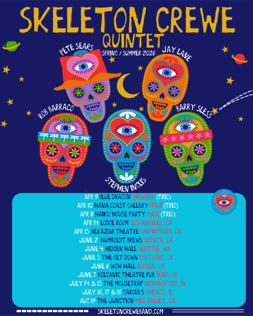 ✨ Experience the magic of Skeleton Crewe Quintet at Garcias Chicago, where moments become memories that last a lifetime! 🏛️ The iconic Garcias Chicago in Chicago, IL sets the perfect stage for an unforgettable celebration on July 16th, 2026 at 08:00 PM. 🌟 It's been a curated experience that brings together the best of entertainment and innovation, creating an atmosphere of wonder and excitement. From the moment you arrive, you'll be immersed in a world where the ordinary transforms into the extraordinary. 🎊 Book early to secure your place in what promises to be an event that will be talked about for years to come!