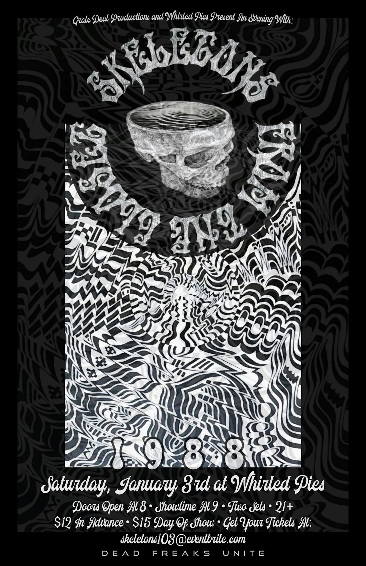 Skeletons From The Closet (or simply Skeletons) is an Oregon-born ensemble that embodies the songs, spirit, and sound of the Grateful Dead, each concert highlighting a specific era from the Dead's 30-year career.