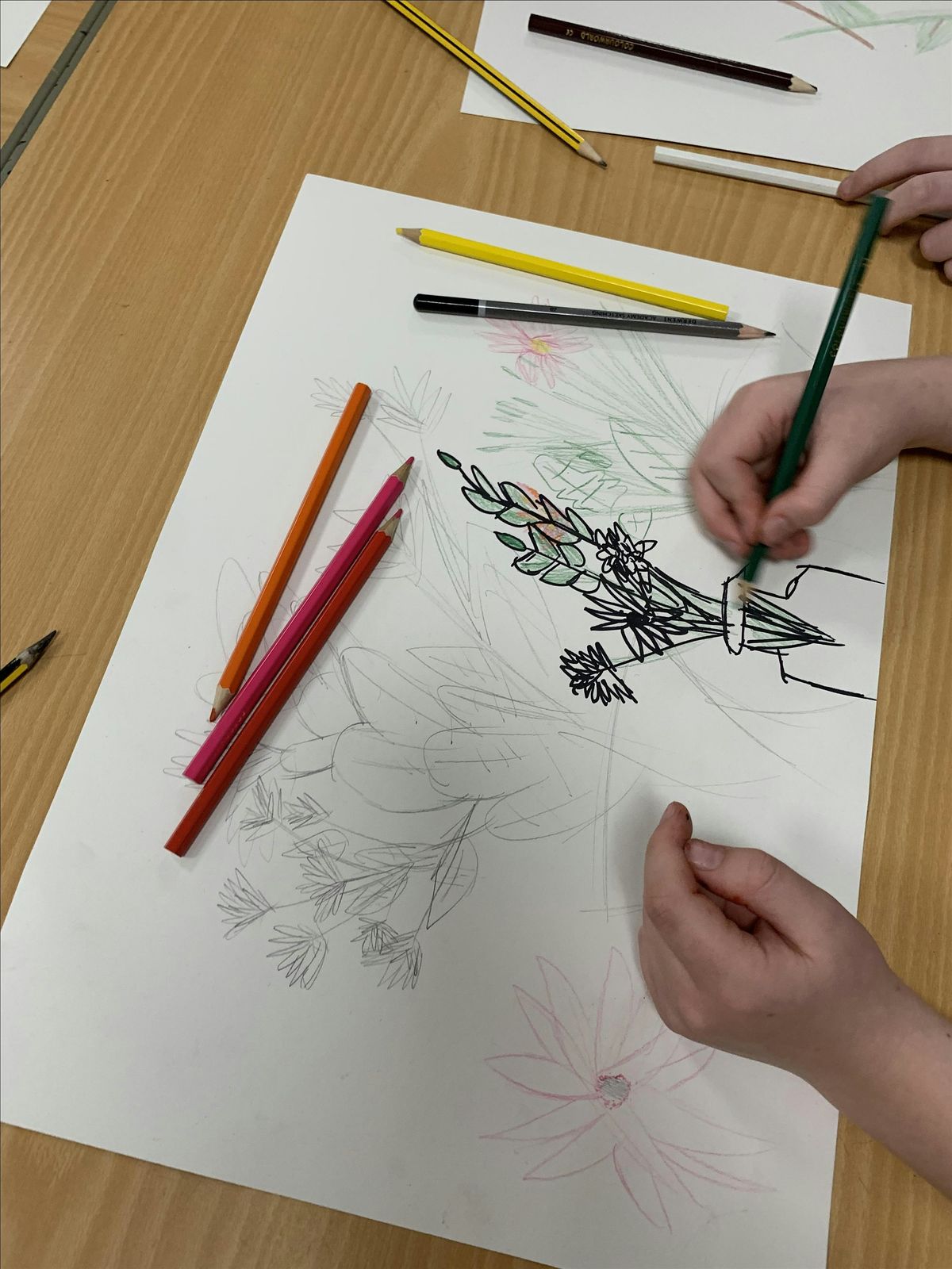 Working within their own sketchbooks, participants will engage with drawing, mark-making, and material exploration in a calm, focused studio environment. Sessions encourage curiosity, creative thinking, and individual ways of working rather than copying or rushing towards finished results.