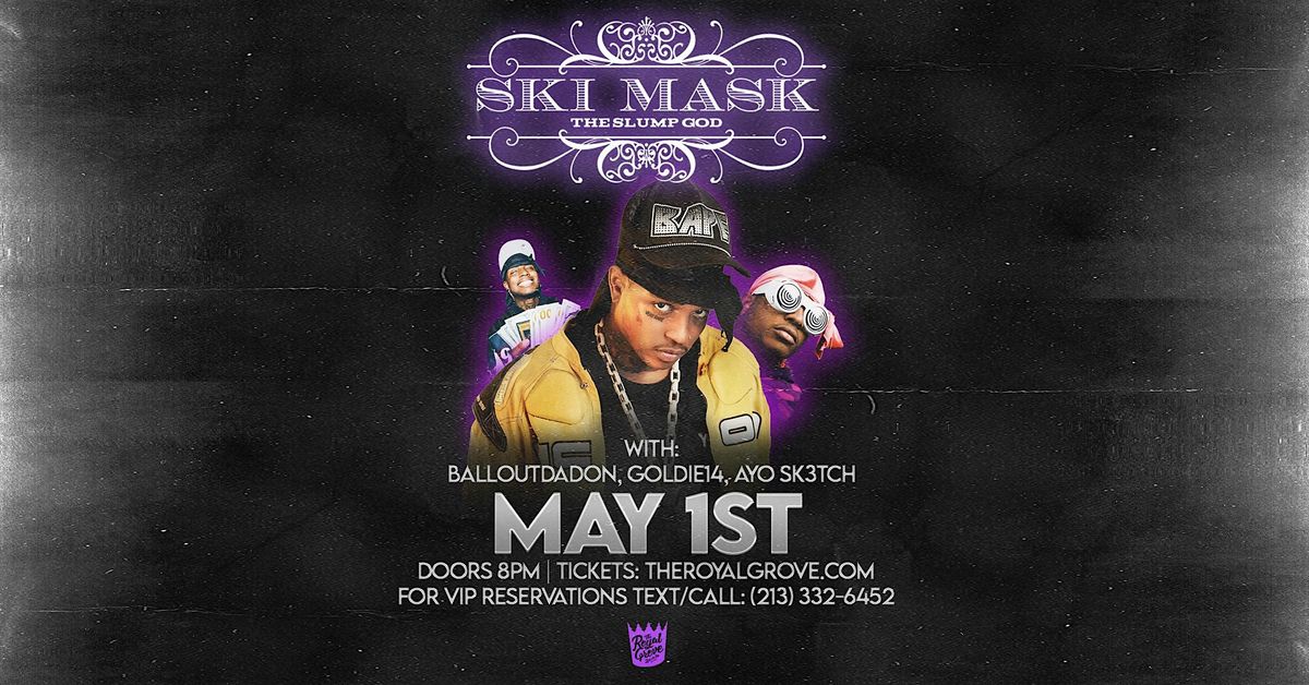 Ski Mask the Slump God live at The Royal Grove May 1. High-energy hits & mosh vibes. Doors at 8PM. Don’t miss it!