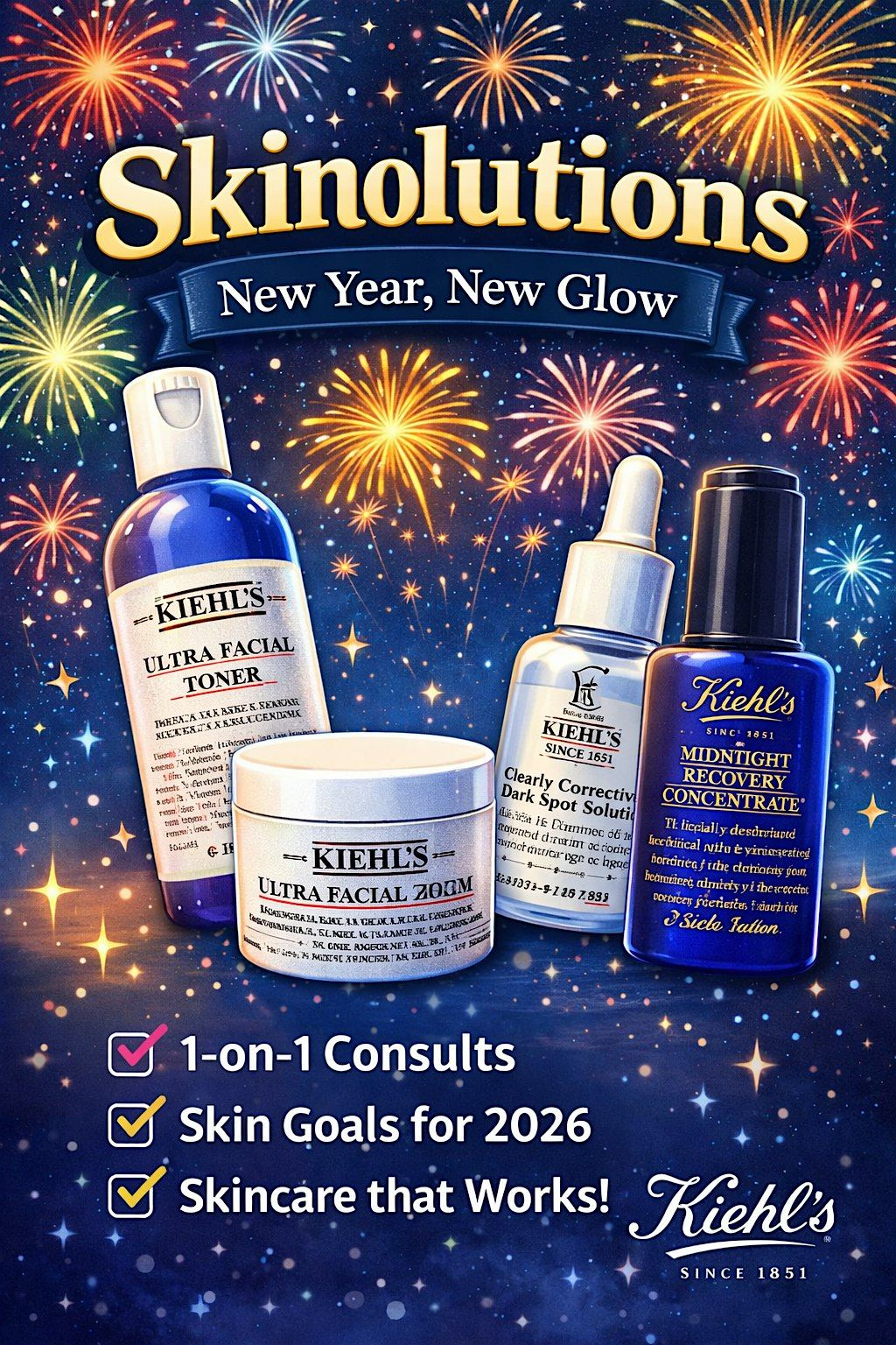 Whether your skin is feeling dry, stressed, dull, break-out prone, or just plain confused, we'll help you create a personalized routine and set a few simple skin resolutions you can realistically keep all year long!
