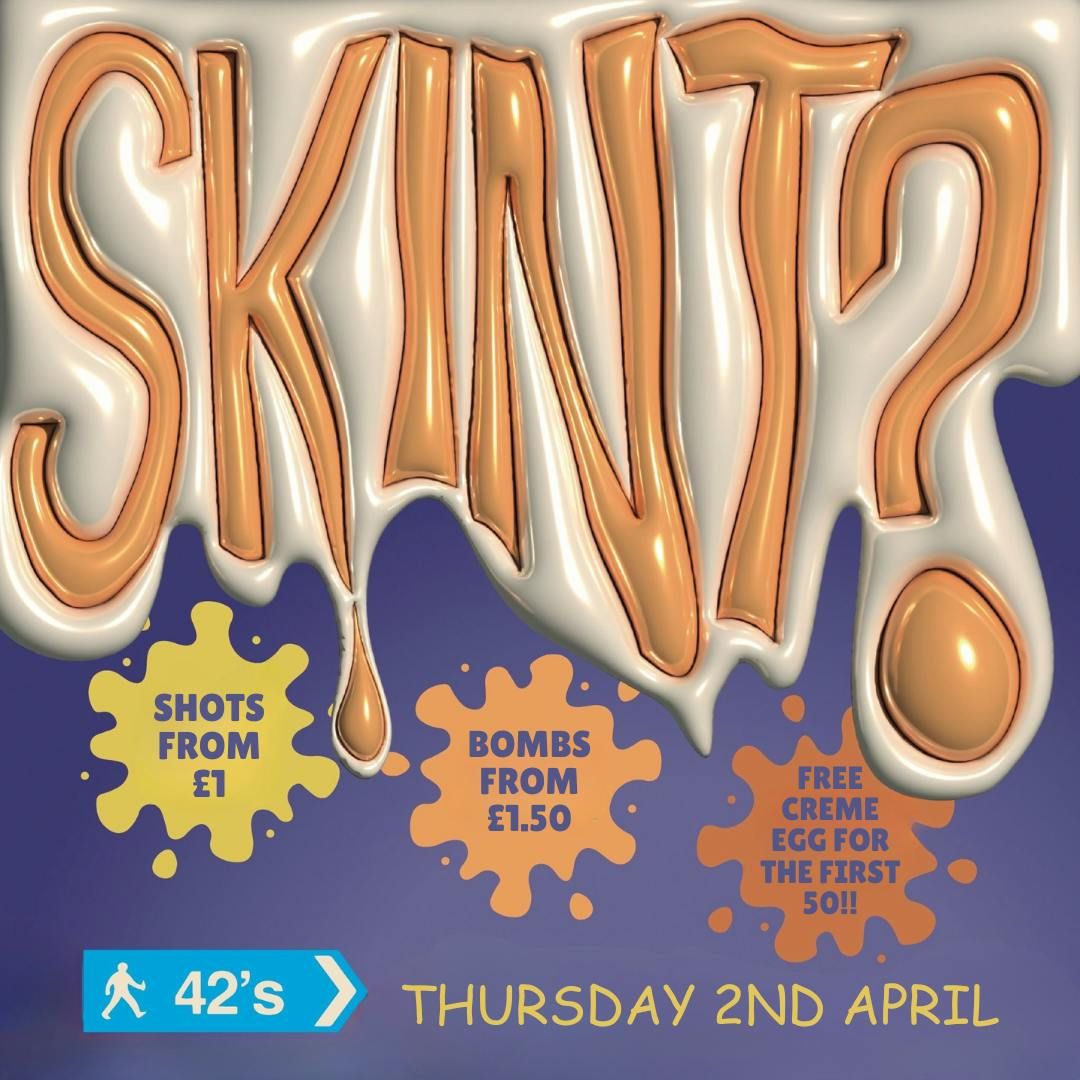 You don’t want to miss out on our iconic SKINT night every Thursday at 42’s! One of the only nights in town that can guarantee a great night out on loose change! FREE CREME EGGS TO THE FIRST 50 PEOPLE THROUGH THE DOOR!