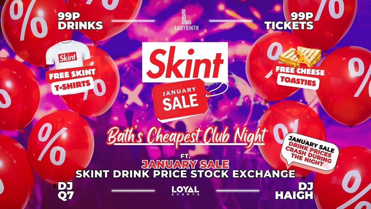 🥃 99p BOMBS EVERY WEEK🎟 99p TICKETS EVERY WEEK📉 Skint Drinks Stock Exchange🤑 BATH'S CHEAPEST CLUB NIGHT👕 FREE Skint T-Shirts🧀 FREE Cheese Toasties🔊 4 Rooms / 3 Music Policies❓ Skint Request Room - You choose, we play!🤩 1000's giveaways & freebies🥳 Crazy themes & takeovers🙌 Skint? WE GOT YOU! competitions🕒 OPEN UNTIL 3AM