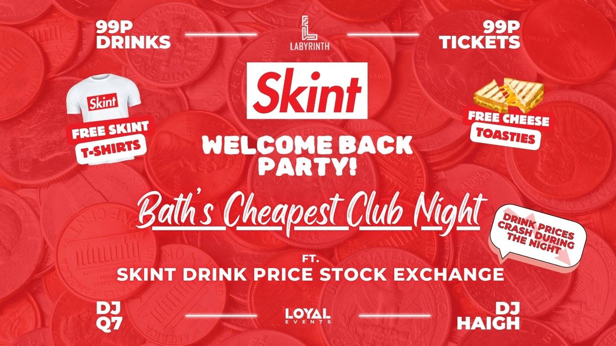 🥃 99p BOMBS EVERY WEEK🎟 99p TICKETS EVERY WEEK📉 Skint Drinks Stock Exchange🤑 BATH'S CHEAPEST CLUB NIGHT👕 FREE Skint T-Shirts🧀 FREE Cheese Toasties🔊 4 Rooms / 3 Music Policies❓ Skint Request Room - You choose, we play!🤩 1000's giveaways & freebies🥳 Crazy themes & takeovers🙌 Skint? WE GOT YOU! competitions🕒 OPEN UNTIL 3AM