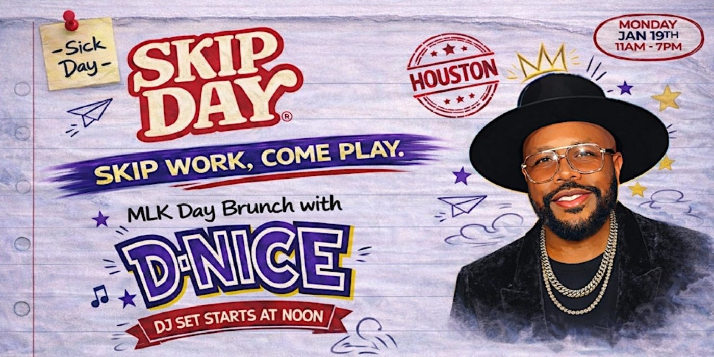 A cultural tastemaker and one of the most respected DJs in the world, D-Nice has soundtracked everything from iconic clubs to global moments. His sets are about feeling, flow, and connection, not just songs. On MLK Day, he brings that energy to Skip Day Houston for a special daytime brunch set that starts at NOON.