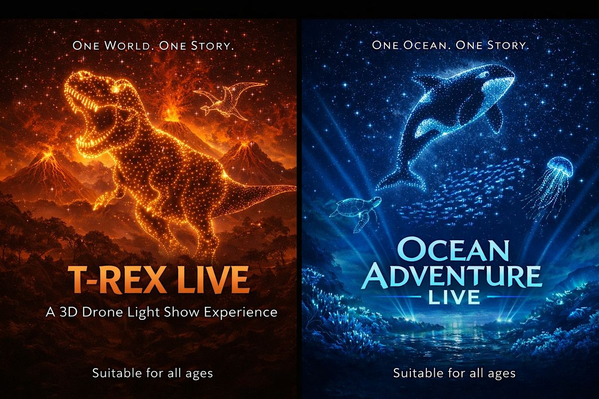 Later in the evening, experience OCEAN ADVENTURE LIVE, a calm and immersive Drone & Laser Light Show Experience inspired by the beauty, depth, and mystery of the sea.