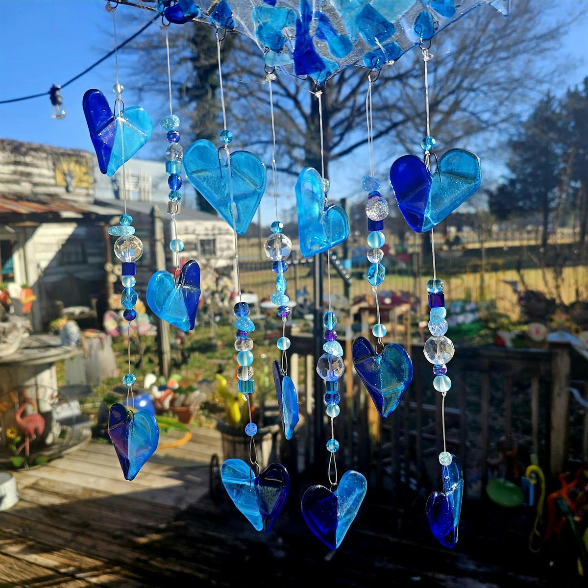 - Project Size: Varies per design; approximately 7 strands of hearts/glass hanging from a 4" x 10" inch fused glass panel. Beads are not included.