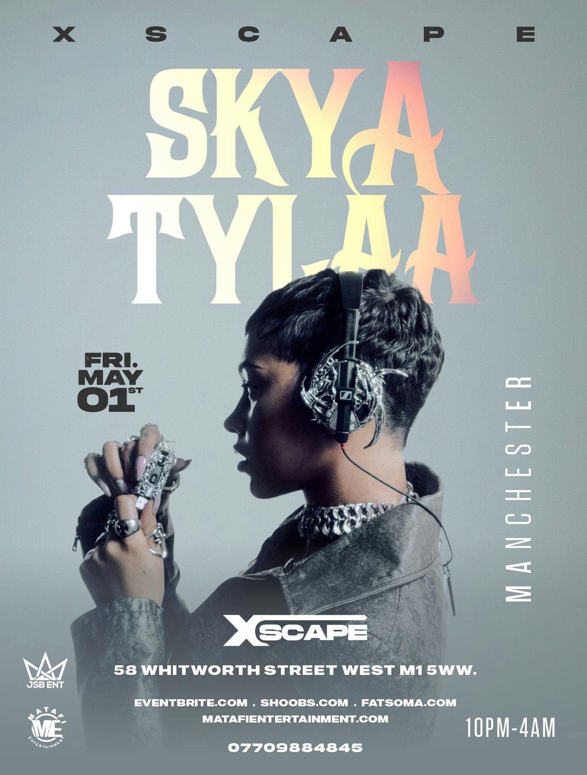 Get ready for a standout night as Skyla Tylaa lands in Manchester for a high-energy takeover at Xscape. Expect a premium late-night experience soundtracked by the best in Afrobeats, Hip Hop, Amapiano, R&B and Dancehall, delivered by some of the cityβs top DJs.Join us Friday 1st May 2026 from 10PM β 4AM for a packed dancefloor, quality music and an atmosphere that builds from start to finish. This is late-night entertainment done properly.