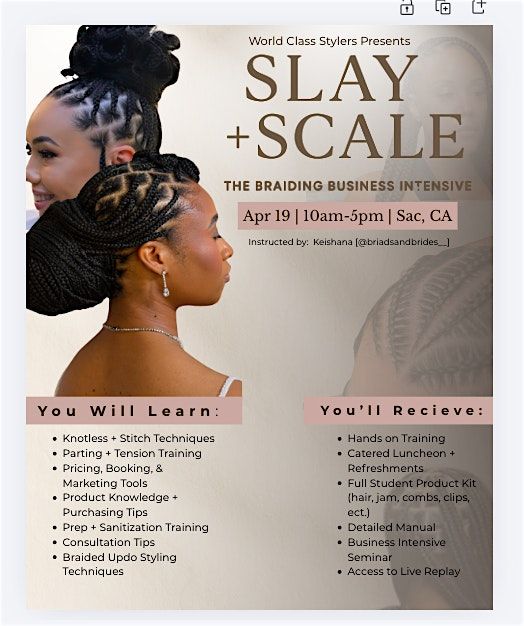 Master knotless & stitch braids while learning how to price, market, and scale your braiding business in one powerful day.