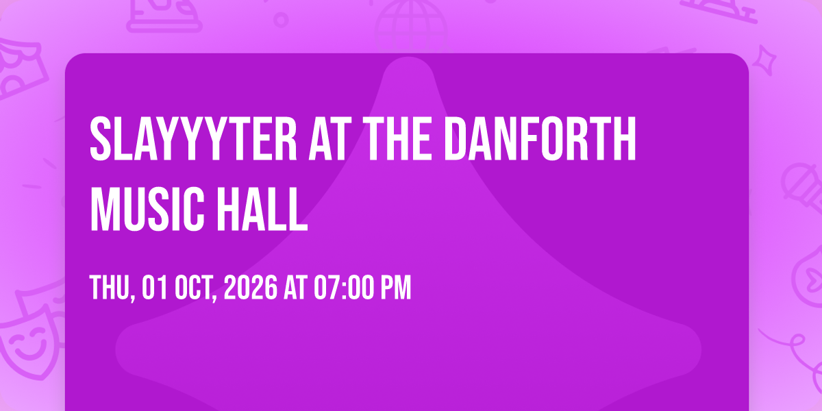 🎉 Prepare to be amazed at Slayyyter at The Danforth Music Hall, the most anticipated gathering of the season! 🌟 Set against the stunning backdrop of The Danforth Music Hall in vibrant Toronto, ON, this event promises to redefine your expectations. 📅 Mark your calendars for October 1st, 2026 at 07:00 PM and get ready to immerse yourself in an atmosphere of wonder and excitement. ✨ From the moment you arrive, you'll be transported into a world where memories are made and stories come alive. They have crafted an experience that perfectly harmonizes entertainment, innovation, and community spirit. 🌈 Join us as we create moments that will be discussed for years!