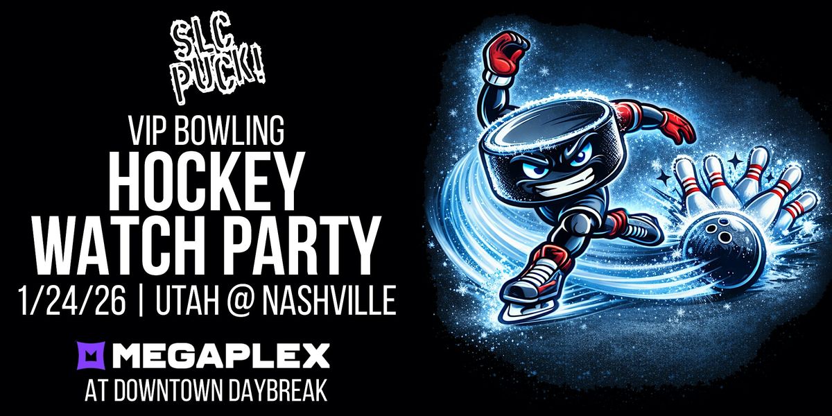 SLC Puck is taking over the VIP Bowling Room at Downtown Daybreak Megaplex for Utah @ Nashville — with the game on the big screen, a pizza buffet, pitchers of soda, a pool table, and bowling going during the game.