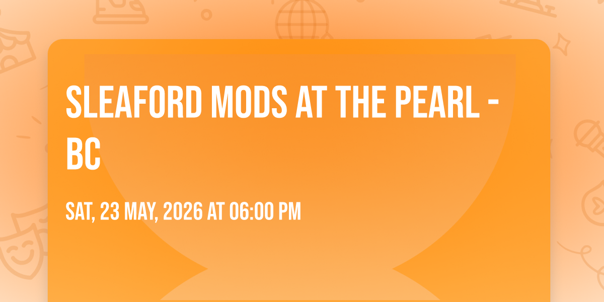 🌟 Step into a world of wonder at Sleaford Mods at The Pearl - BC, where extraordinary moments await! 🏛️ Located at The Pearl - BC in dynamic Vancouver, BC, this event will become the talk of the town. 📅 Join us on May 23rd, 2026 at 06:00 PM for a celebration that defies the ordinary. ✨ This curated experience brings together the best of entertainment, culture, and community spirit. Every detail has been thoughtfully planned to ensure an unforgettable experience for all our guests. 🎯 Take advantage of this opportunity to be part of something special. 🎊 Early registration is recommended as space is limited!